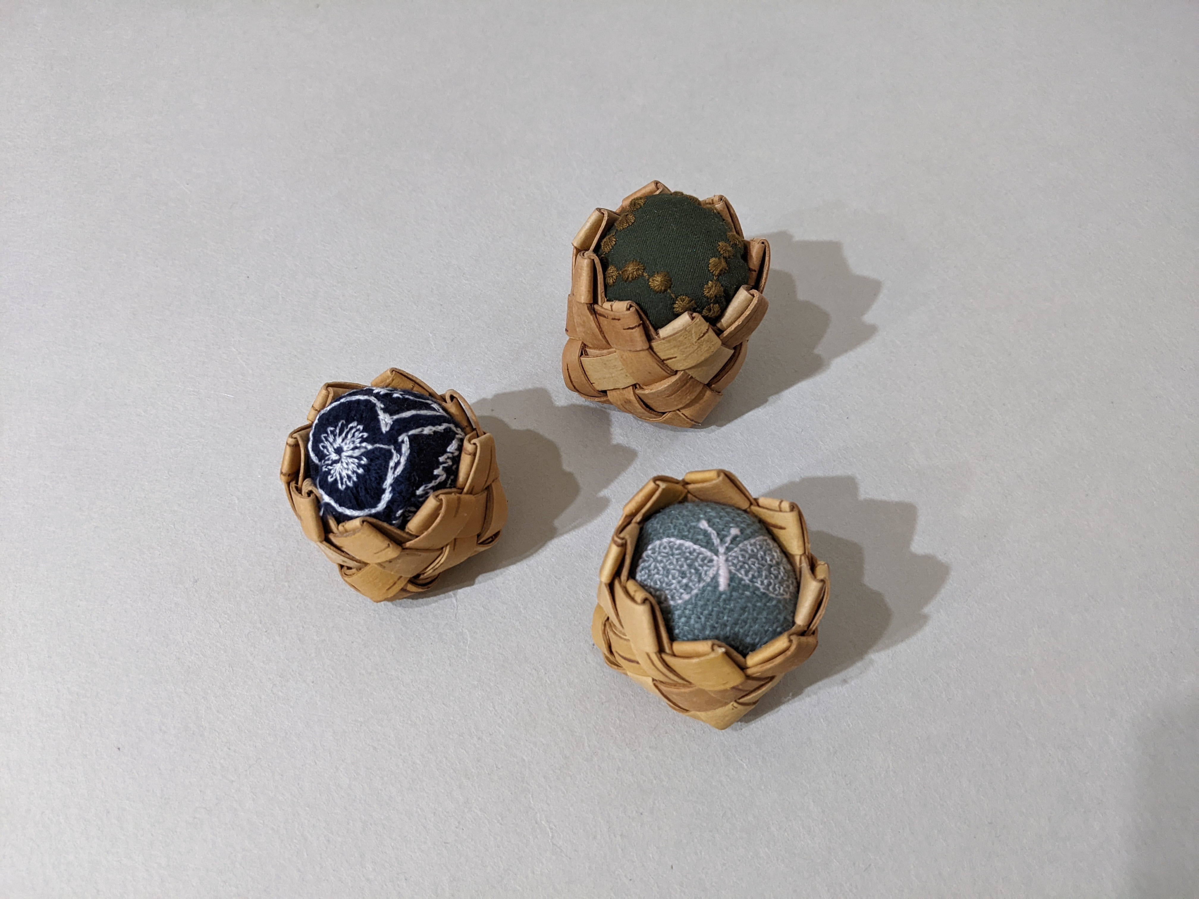 自然素材の貴重な白樺で作られた、ころりんとした針山。針仕事を楽しむ方に最適。